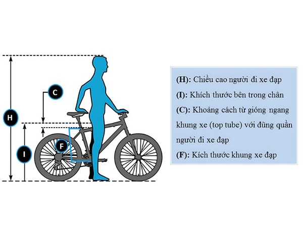 | Chiều cao của người lái (centimet) | Inseam x 0,70 (centimet) | Kích thước khung (centimet) | Kích cỡ |